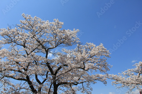 sakura, cherry blossom, flower, flower petals, bloom, full bloom, clean, lovely, nature, life, biology, plant, wood, branch, spring, season, sky, blue skies, weather, sunny, gradation, landscape, view, background, wallpaper