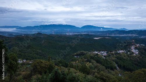 nara, japan, sum, summer, cherry blossom, summer, morning, sky, lookout, overcast, cloud, green, four seasons, season, extended, grandiose, town, mountain chain, mountain, horizon, light, wood, plant, temple, temple, panorama, unmanned, background, tour tourism, showplace, tourist attraction