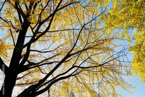 ginkgo, yellow, nature, spring, plant, flower, wood, flowering, park, green, fall, season, bloom, lovely, ginkgo, leaf, light, beauty, blue skies, blue, four seasons, tokyo, japan, landscape, view