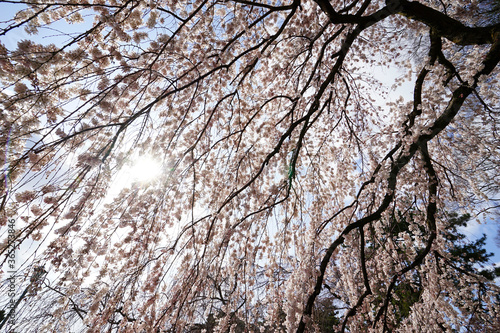 見上げる枝垂れ桜