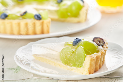 transparent, muscat, cake, tart, clear, jello, pretty, cut, cake, triangle, fresh, blueberry, sheer, sweet, fruit, sweet, cold, lovely, percolation, light, grape, food, tea