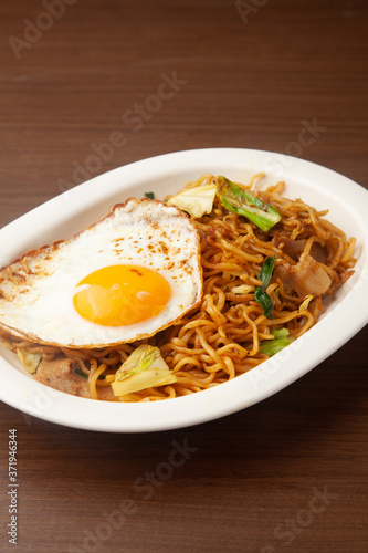 curry, food, dish, noodle, vegetable, cabbage, pork, fried egg, spice