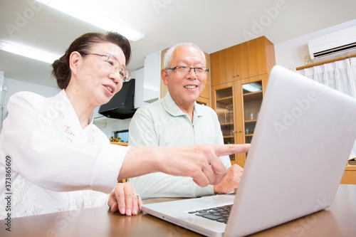 people, man, woman, couple, japanese, 60's, notebook, operation, cyberspace, pursuit, person, man, woman, aged, grandfather, babushka, husband, wife, family, partner, notebook, personal computer, network