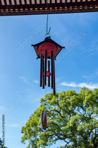 wind chime, kyushu, tour tourism, tourist attraction, history, landscape, japan, shrine, building, facility, sunny, blue skies, showplace, red, nature, journey, travel, copy space