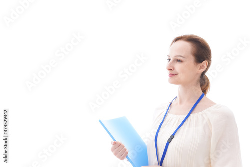 smile, career woman, work, business, break, world, briefing, file, interview, information, remark, announcement, presentation, meeting, overseas, overseas, global, foreign language, english, teacher, classroom, country, training, culture, young, woman, european, westerner, russian, alien, white, white background, copy space