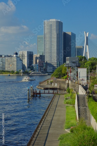 佃島 隅田川川沿いの景色 中央大橋 遊覧船