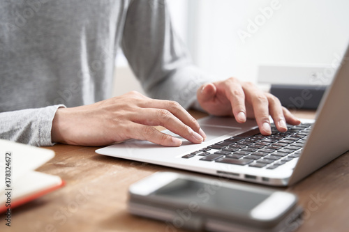 telecommuting, typing, home, man, japanese, work, business, businessman, asian, home office, room, people, indoor, personal computer, lifestyle, waist up, notebook, casual, indoor, notebook, note, accounting, lighter, freelance, light, smartphone, smartphone, hand, closeup