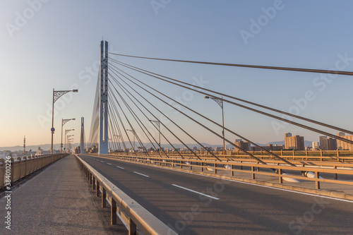 下流側の歩道から見る夕刻の菅原城北大橋