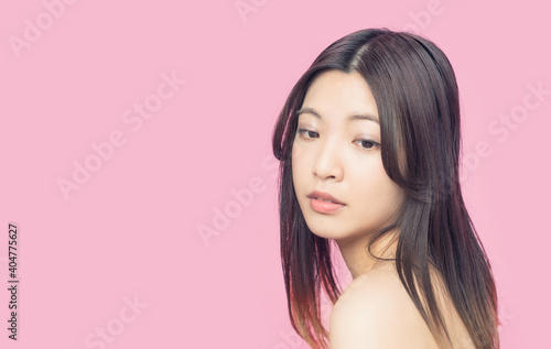 cosmetic, skincare, pink, colourful, spring, lovely, woman, japanese, taiwanese, chinese, korean, beauty, beauty, lifestyle, cosmetic, make-up, people, young, asian, este, sarong, long hair, latex, toilet water, cleansing, smile, hair care