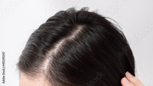 woman, woman, ageing, hair, hair, head, cosmetic, beauty, dye, middle-aged, 30s, up, closeup, image, japanese, people, hair, white, white background, check, look, hair care, coiffure, tint, trouble, part, contemplate, epilation, bald, bald, asian