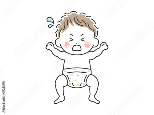 baby, moody, nappy, anger, resent, hunger, nudity, cry, baby, toddler, children, underpants, person, baby, son, daughter, white background, illustration, vector