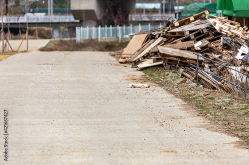 dog, countryside, go to bed, nap, roadside, titan, courage, debris, trash, wood, way, wood, grass, sand, nature, landscape, plant, sweet, animal, background, pet, relax, weed, sunny, open air, recycling, lumber, garbage, route, wreckage, demolition, concrete, sleep, devastation, textured, environment, eco, environmental issue, sleep, transportation, dog, chuck, copy space, lifestyle, material, waste, spring