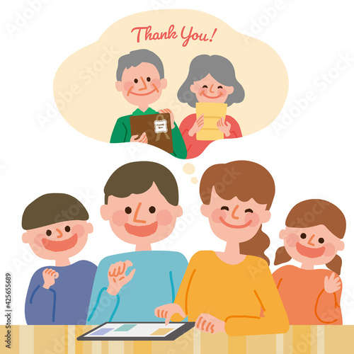 family, tablet, cyberspace, gift, grandparent, aged, aged, longevity, birthday, gift, imagination, envision, couple, children, children, boy, girl, nanny, grandfather, babushka, grandfather, grandfather, grandparent, web, far, celebration, white background, vector, balloon, consultation, discuss, contemplate, deliberation, smile