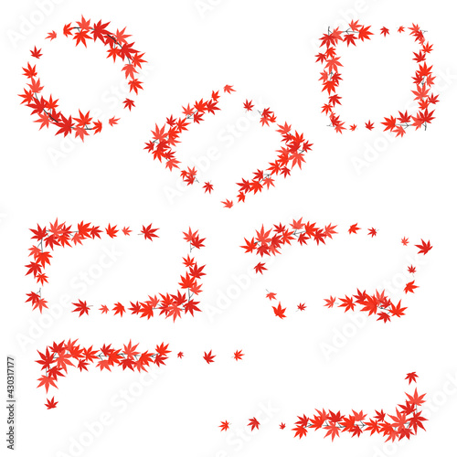 maple, maple, acer, maple, frame, frame, decoration, ornament, circle, yen, square, quadrangle, square, rhomb, rectangle, sector, fall, pretty, clean, real, sum, leaf, branch, foliage, white background, red, vivid, material, illustration, design, set, variation, japan, asia, nature, graphic, decoration