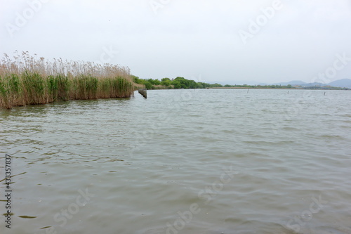 overcast, water, green, tea, water surface, sky, japan, landscape, view, environment, spring, season, wave, picket, calm, wood, ear, leaf, community, reed, mountain