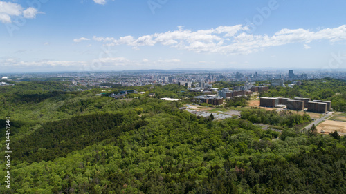 sendai, view, landscape, drone, image, material, view, verdure, spring, may, blue skies, mountain, building