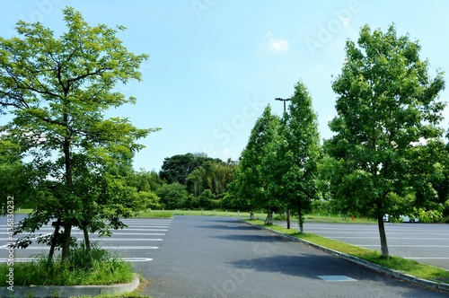 landscape, verdure, green, park, sunny, blue skies, park, wood, forest, forest, healing, ease, japan, background, wallpaper, summer, space, parking, concrete, sunlight, quiet, route, sky, nature, summer, grass, path, rural, street, way, blue, sunny, country, spring, asphalt