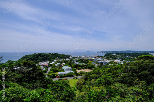 kanagawa, sky, sea, lookout, blue, green, green, nature, landscape, view, panorama, cloud, hike, park, refresh, relax, villa, copy space, blank space, background, advertisement, background, bg, image, material, tour tourism, tourist attraction, travel, journey, showplace