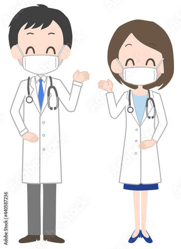 mask, virus, virus, corona, medical care, doctor, doctor, doctor, diagnosis, exam, hospital, stethoscope, clinic, labcoat, health, occupation, marode, contagion, flu, hay fever, prevention, cough, illustration, vector, sweet, material, people, two people, two people, adult, woman, woman, man, 30s, steer, guide, colours