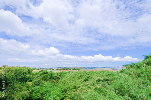 summer, sky, blue, countryside, nature, landscape, mountain, field, home, home, green, green, copy space, blank space, background, advertisement, background, bg, image, material, tour tourism, tourist attraction, travel, journey, showplace, open air, japan, grass, plant, sunny, hot, midsummer, heat wave, kanagawa
