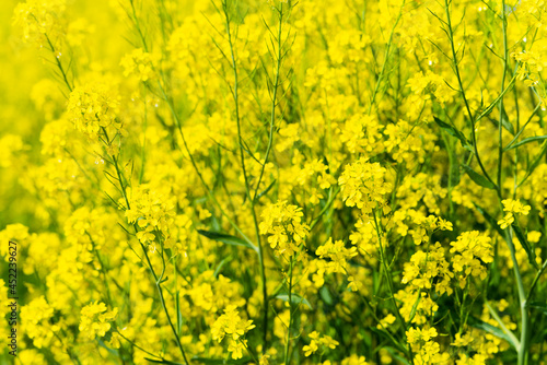 field, flower, yellow, nature, spring, agriculture, plant, sky, landscape, canola, rapeseed, farm, summer, meadow, wood, crop, rural, blue, flowering, oil, seed, grass, countryside
