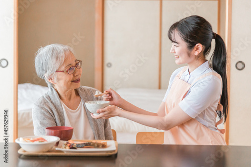assistance, meal, care, aged, nanny, nurse, meal, aged, housekeeper, smile, rice, woman, diabetes, rice, dish, carbohydrate, cooking, care worker, helper, food, second life, welfare, grandparent, home, two people, house, family, indoor, japanese, people
