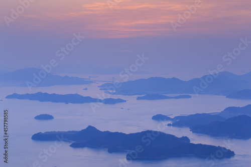 瀬戸内海のしまなみの夜明け 広島県三原市竜王山展望台