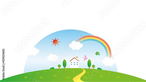illustration, landscape, nature, town, town, building, house, residential area, residential area, rainbow, house, view