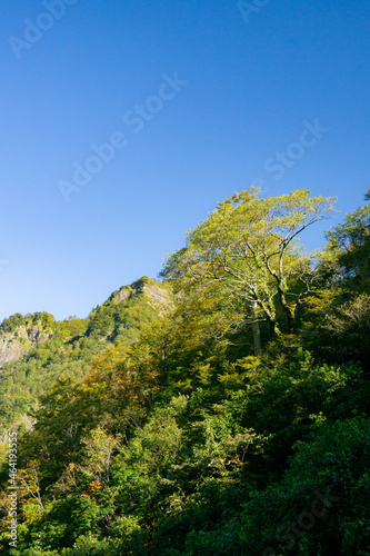 landscape, lovely, blue skies, yellow, green, scene, nature, fall, mountain, vivid, hike, sky, climb, mountain, ramp, trek, sunny, outdoors, red, view, forest, mountaineering, japan, morning, morning, peak
