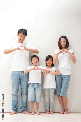 手でハートを作る夏の四人家族
