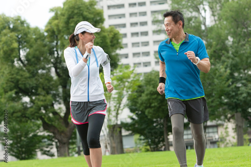 japanese, 50's, couple, sport, training, building, fitness, lifestyle, runner, jog, relax, exercise, open air, family, fun, vacation, healthful, look, park, 30s, pursuit, woman, smile, people, man, run, adult, man, chum, two people, suffer, couple, hat, grove, middle-aged