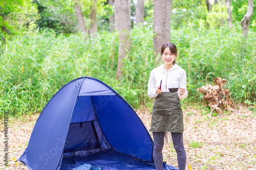 tent, outdoors, forest, mountain, journey, climb, break, open air, relax, book, meal, preparation, personal computer, personal computer, leisure, nature, telecommuting, blog, record, lighter, hike, camp, weekend, vacation, live, open air, camping, young, woman, asian, japanese, chinese, korean, copy space
