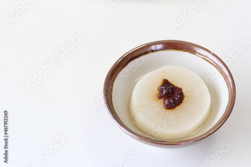 radish, vegetable, white background, miso, blank space, food, winter, warm, delicious, delicious, closeup, hood, up, macro, circle, macro, macro