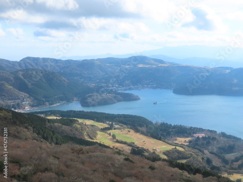 箱根の駒ヶ岳ロープウェイから見下ろす芦ノ湖