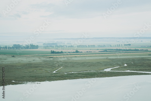 fog, sea, mystic, water, meadow, landscape, stream, lake, sky, nature, cloud, travel, boat, spring, sun, port, view