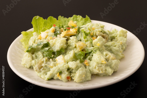 potato, potato salad, potato, salad, shrimp, shrimp, lettuce, boiled egg, image, material, side dish