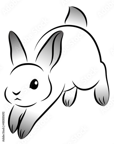 元気に飛び跳ねているウサギ 絵筆で描いた墨絵風のお洒落なイラスト 手描きのアナログ風ベクター