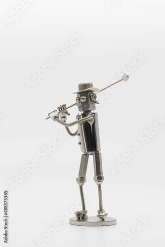 golf, golfer, man, volt, driver, doll, gentleman, white background, white, silver, metallic, model, hat, display, sport, copy space, screw, nut, material