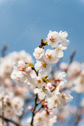 青空に映えるソメイヨシノの花びら