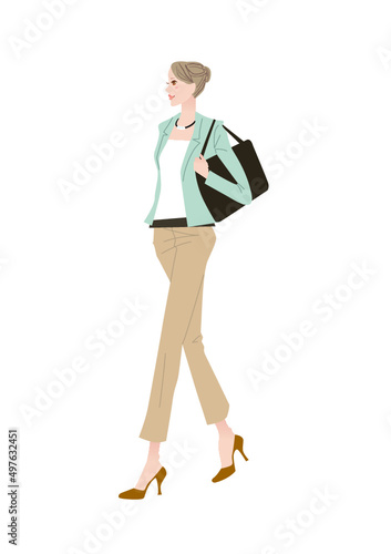 イラスト素材 ビジネスパーソンの女性 歩くポーズ