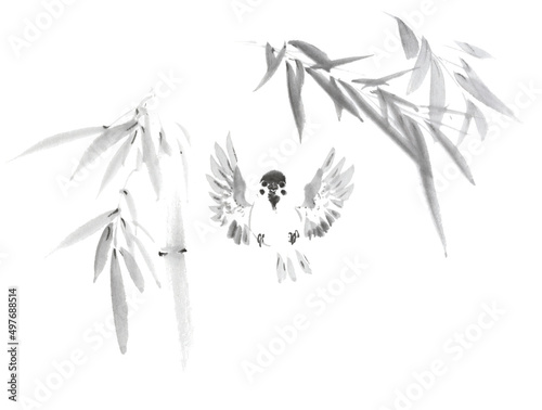 bamboo, wood, plant, nature, leaf, vector, silhouette, illustration, branch, pattern, design, floral, asia, japan, black, picture, china, decoration, summer, sparrow, bird, sparrow