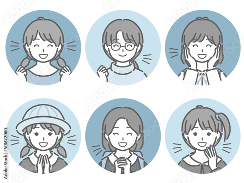 喜ぶ小学生女子の丸アイコンセット
