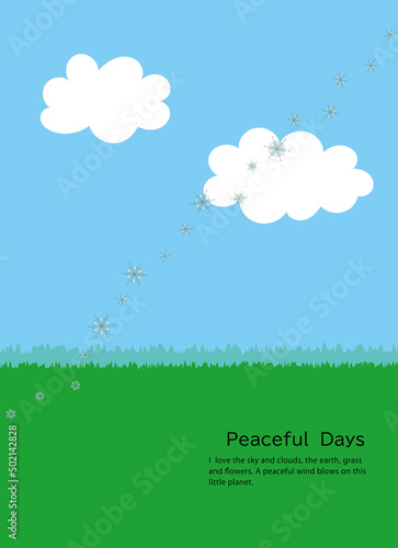 landscape, sky, cloud, copy space, background, peace, wind, field, vector, illustration, wallpaper, grass, nature, natural, soft, flower, meadow, meadow, design, season, blue, green, white, blue skies, graphic, summer, spring, blow, fly, plant, sky blue, environment, global, view, summer, blank space