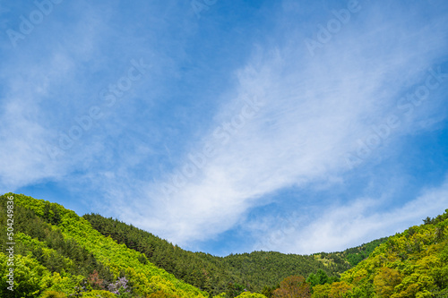 spring, mountain, sky, cloud, verdure, green, blue, wood, nature, landscape, green, blue skies, sunny, copy space, refreshing, background, background, forest, environment, environmental issue, forestry, countryside, healing, healing, journey, travel, open air, open air, daytime, japan, photo