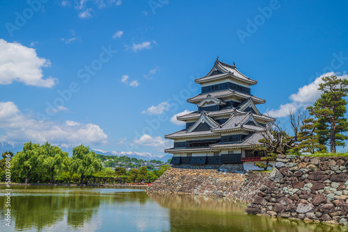 castle, donjon, copy space, sunny, blue skies, sky, cloud, landmark, landmark, landscape, tour tourism, tourist attraction, history, castle, trench, showplace, japan, travel, midland, castle, historic site, stone wall, building, view, aged, samurai, sum, tradition, symbol, material, image