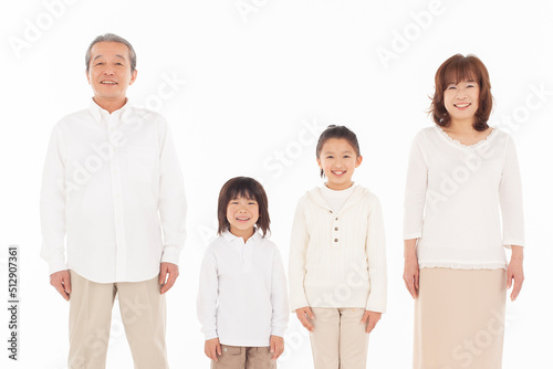 japanese, adult, aged, children, grandchild, grandparent, grandfather, grandparent, family, portrait, chum, 50's, 60's, young, man, woman, boy, girl, granddaughter, grandson, children, brother, couple, grandfather, babushka, second life, smile, sweet, happy, people, lifestyle, asian, indoor, indoor, white background, cut-out