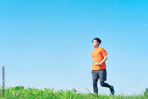 man, run, running, jog, open air, blue skies, sport, young, exercise, exercise, copy space, health, health care, training, bank, japanese, young, fitness, diet, athlete, outside, sunny, levee, asian, alone, 30s