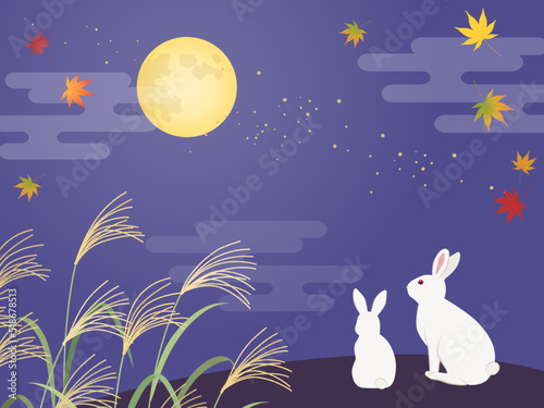 background, full moon, rabbit, rabbit, miscanthus sinensis, fall, moon, community, wallpaper, frame, illustration, sky, cloud, plant, natural, sum, landscape, view, nature, animal, creature, seated, look up, frame, vector, illustration, image, purple, purple