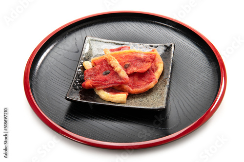 watermelon, watermelon, dried fruit, fruit, dryness, fruit, dry, stockfish, sweet, sweet, pastry, confectionery, sweet, cake, image, up, closeup, unmanned, food, food, food, foodstuff, meal, staple, food, edible, white background, cut-out, copy space, white space, red, snack