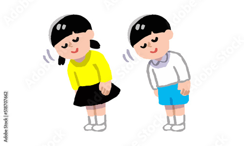 greeting, people, handwriting, freehand, illustration, vector, smile, children, boy, girl, brother, bow, etiquette, colours, two people